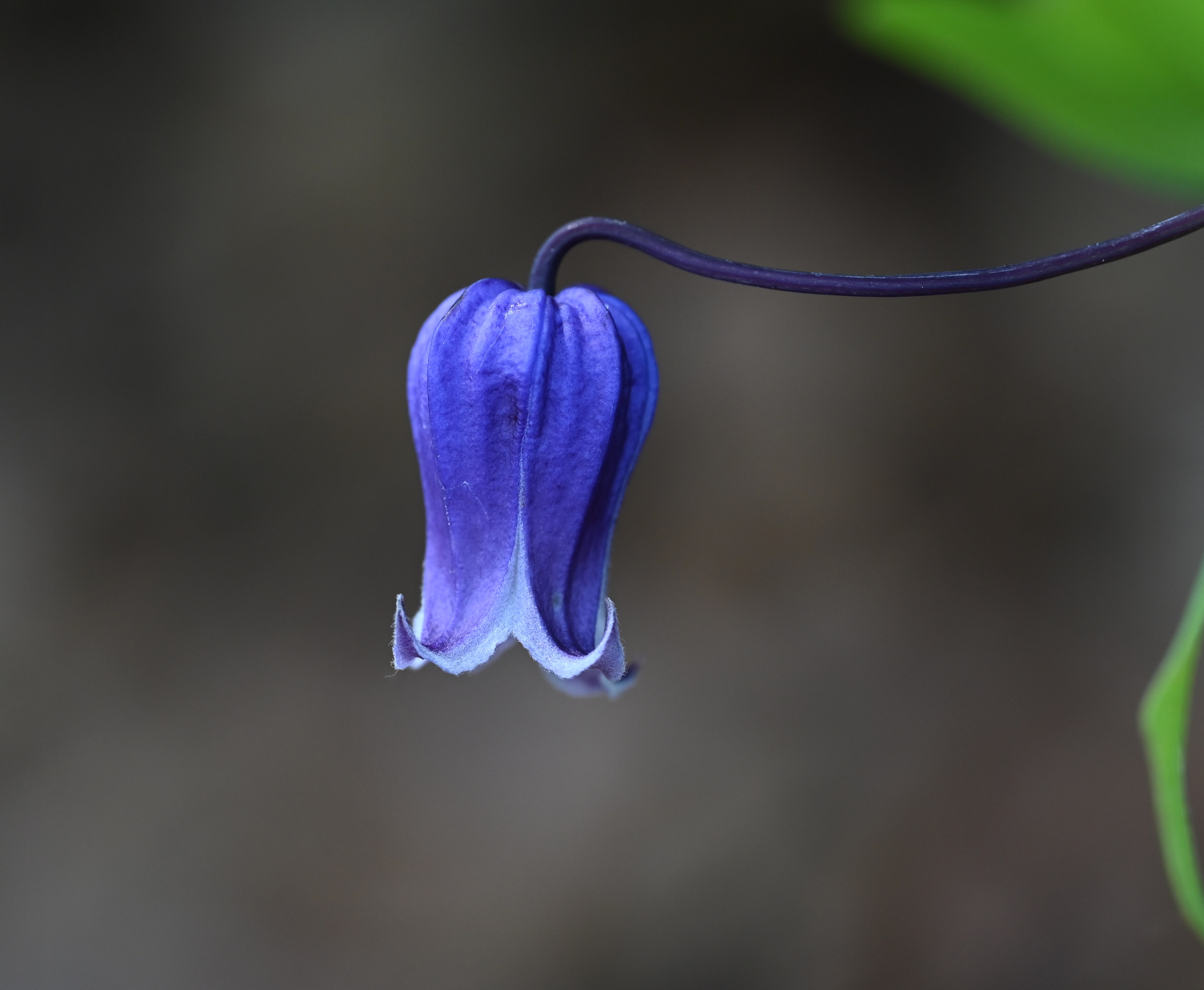 形态特征:花朵瓮形,下垂,长在紫色长柄上,花紫色,花径小;